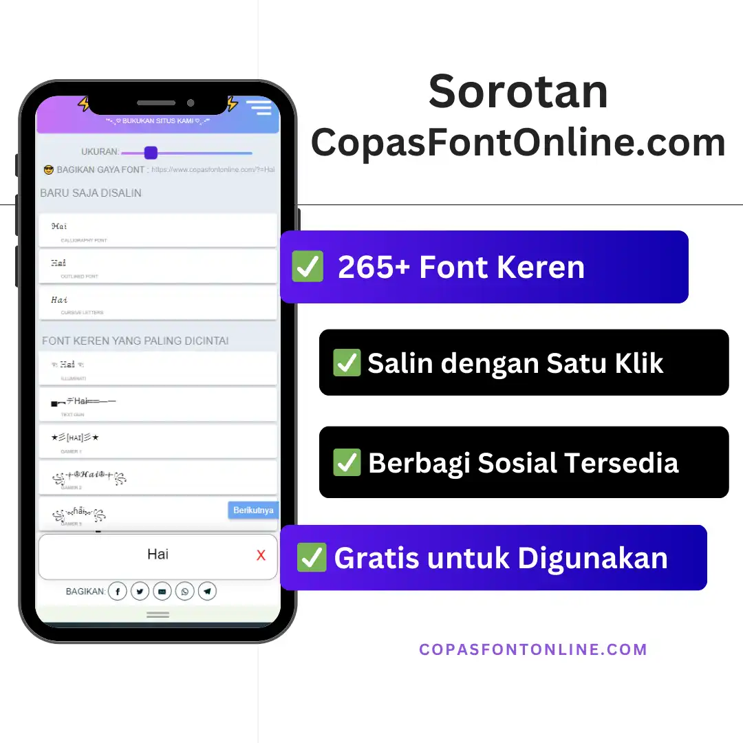 Mencari cara untuk meningkatkan keterangan atau bio media sosial Anda secara instan? Copas Font Online adalah alat yang tepat untuk mengubah teks biasa menjadi karakter yang berani, penuh gaya, dan mencolok secara visual hanya dengan beberapa klik. Baik Anda sedang membuat bio Instagram, nama pengguna Free Fire, atau mendesain spanduk digital, ini font online generator memungkinkan Anda menyalin dan menempel dari berbagai macam gaya font. Ini dapat membantu Anda tampil menonjol dengan gaya teks unik yang siap disalin dan ditempel di mana saja.